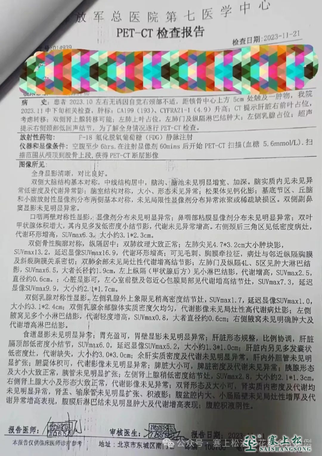 这两张图片是我在中国人民解放军总医院第七医学中心检查pet-ct的报告,以及我的病的诊断,