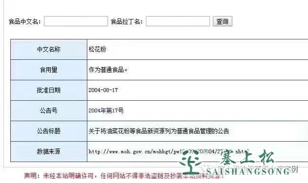 鉴于松花粉的食用安全性极高,卫生部公告2004年第17号文件,明确指出:松花粉由1998年认定的保健食品变更为普通食品,和我们日常吃的大米、红枣、枸杞一样安全。